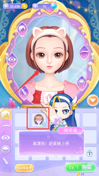 4、将合成后的魔法发型拖拽到角色模型,即可实时预览并更换炫酷新造型。