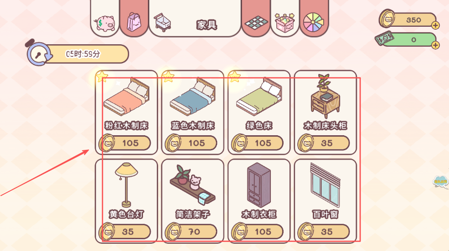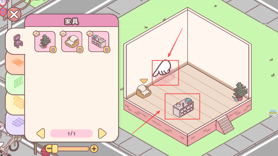 3、使用爱心购买家具装饰小屋,打造个性化居住空间。