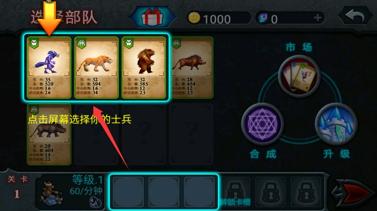 3、通过连续点击屏幕召唤各类士兵,不同兵种需要消耗相应数量的能量点数。