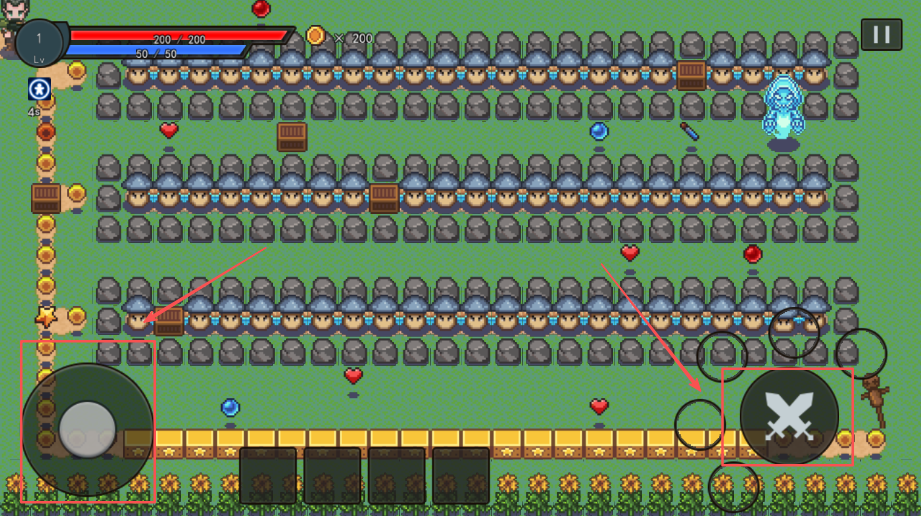 1、选择喜欢的关卡开始游戏,使用虚拟摇杆控制角色移动避开怪物攻击范围。