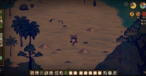 本作既然命名为《饥荒:海难》,与海洋相关的元素自然也非常多,不仅游戏开始之时主角就在从一处孤岛的海边醒来,游戏中的植被、动物、季节也有着浓浓的海洋风情。