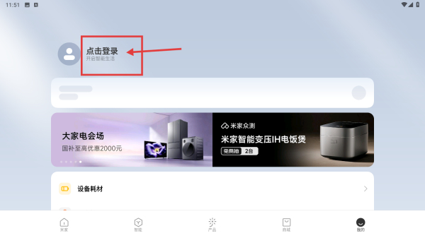 2、在个人中心页面,点击点击登录区域,进入小米账号登录页面。