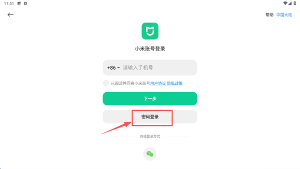 3、在登录页面,点击密码登录选项,切换到密码登录界面。