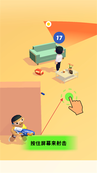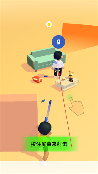 3、待敌人视线移开,再次按住屏幕射击,降低敌人头顶的数字,直到击败敌人。