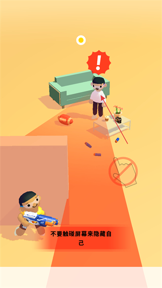 2、当敌人的视线扫过来,出现红色感叹号提示时,不要触碰屏幕,让角色隐藏,避免被发现。