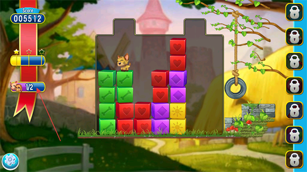 1、进入游戏,观察屏幕左侧的Score分数以及关卡进度1/2,明确目标是营救小猫。