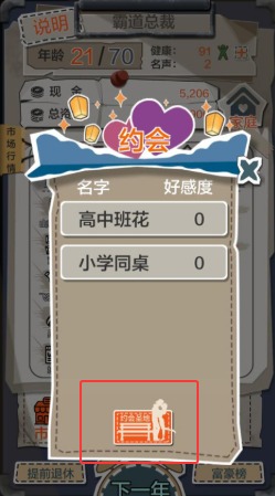 是一款休闲的模拟小游戏,游戏真实的模拟创业的过程,玩家要在年轻的时候在商场打拼,开始贩卖各种东西来维持生计,然后慢慢涉及各行各业,努力的坚持不一定有好的回报,但是只要苦心经营,相信总有一天你会一飞冲天的。