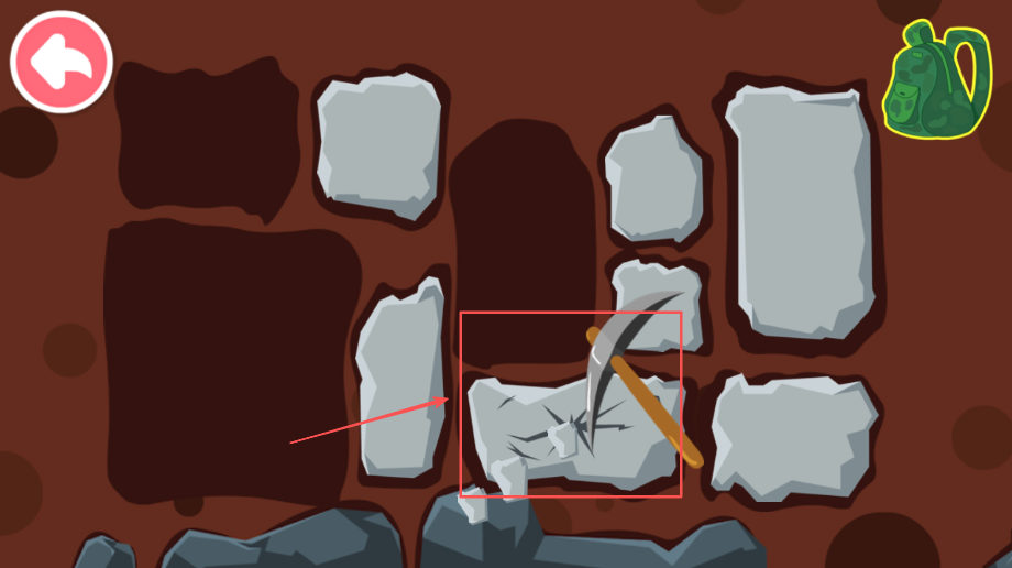 1、使用铲子等工具在沙地中挖掘寻找隐藏的恐龙化石,注意控制力度避免损坏脆弱的化石标本,培养细心和耐心。