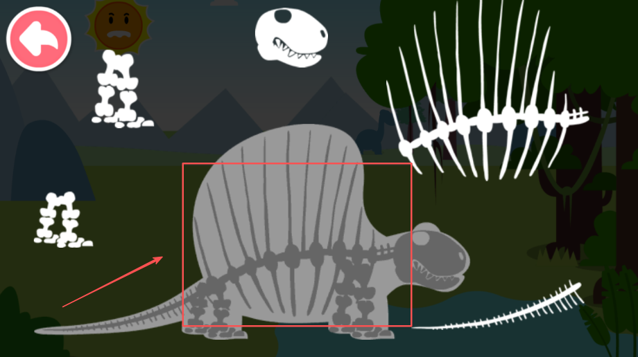 2、将发现的骨骼碎片拼合成完整骨架学习恐龙身体结构,需要仔细观察每个碎片的形状特征,锻炼观察能力。