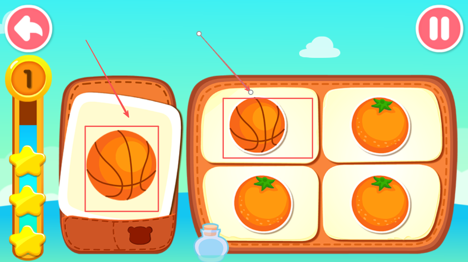 3、通过简单的拖拽操作将已经识别出的配对物品移动到指定的位置,完成当前关卡的挑战任务,操作方式符合幼儿的手部发育特点。