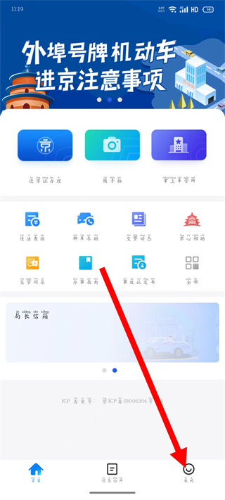 1、打开北京交警,点击首页底部我的,进入个人中心。