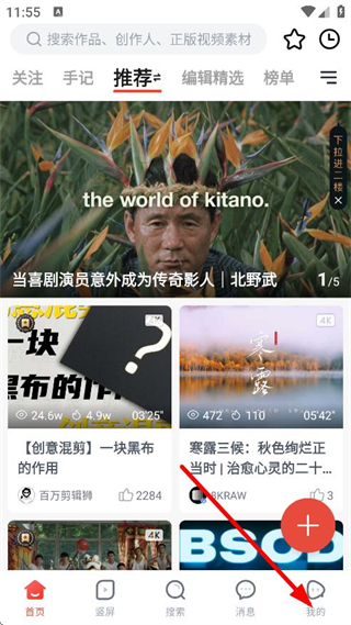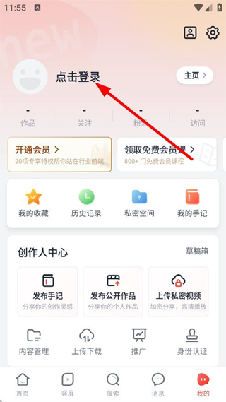 1、在新片场APP首页,点击右下角我的,进入个人中心页面。