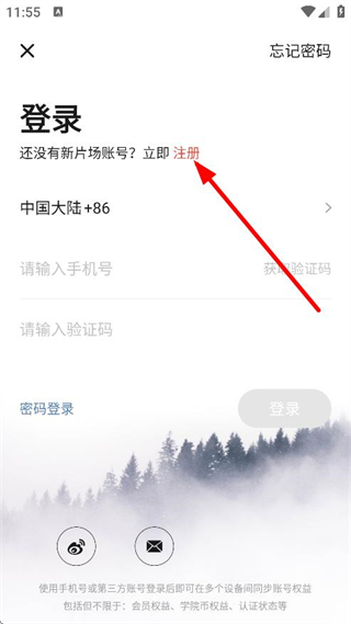 3、在登录页面,若没有新片场账号,点击立即注册,进入注册页面。