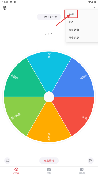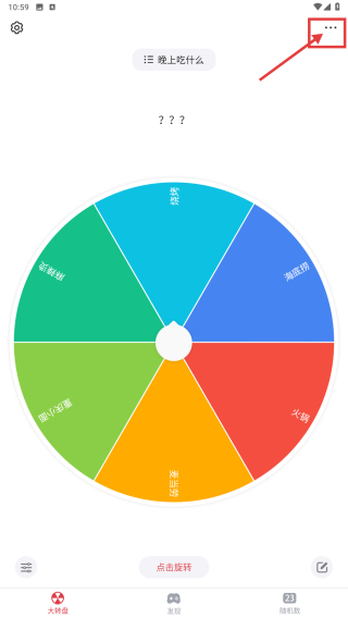 1、打开决策转盘类应用,点击右上角···图标,展开功能菜单。