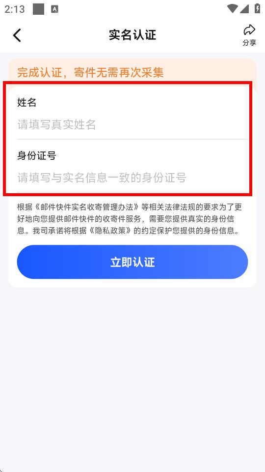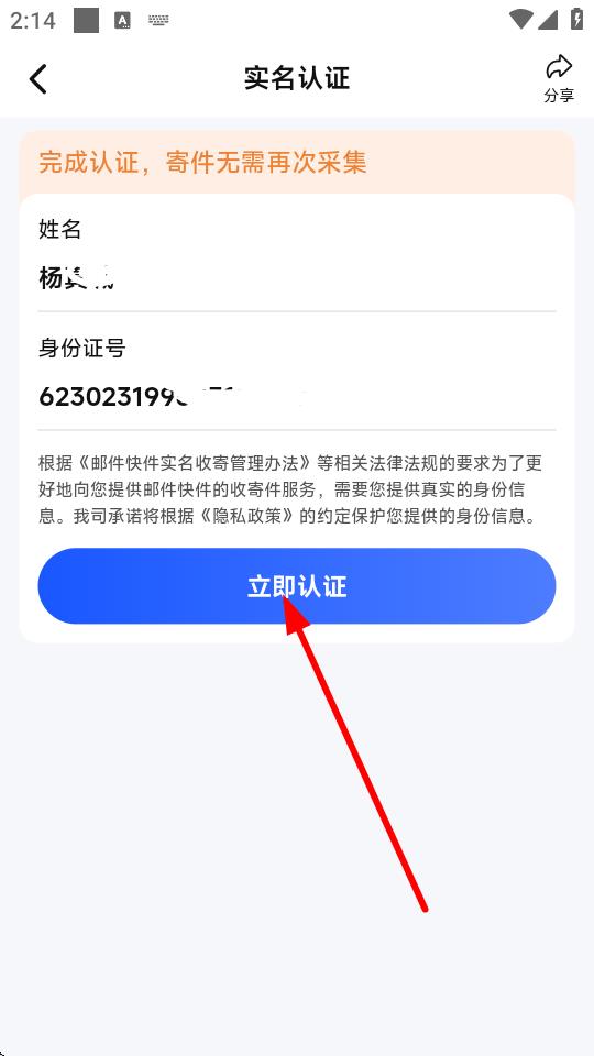 4、确认填写的信息无误后,点击立即认证按钮,即可完成德邦快递APP的实名认证。