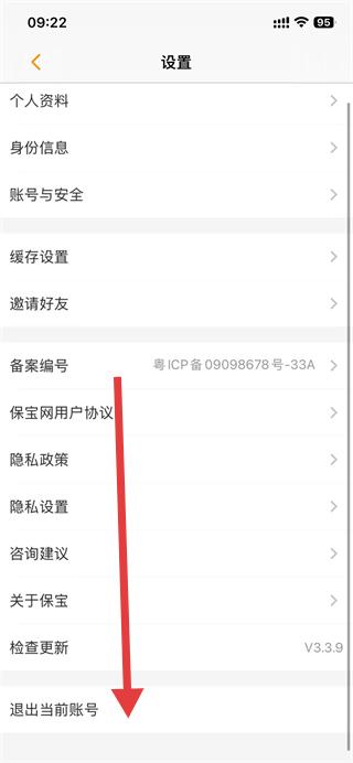 3、进入设置页面后,找到并点击退出当前账号选项。