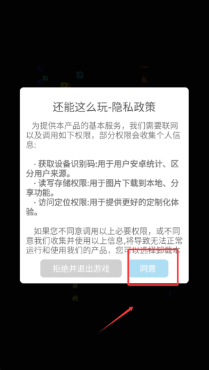 1、首次启动应用时将显示用户协议页面,阅读完毕并点击同意按钮后即可进入游戏主界面。