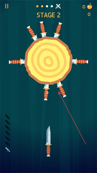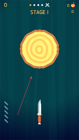 1、STAGE1时,瞄准旋转木盘,找准时机发射飞刀,让飞刀插入木盘。
