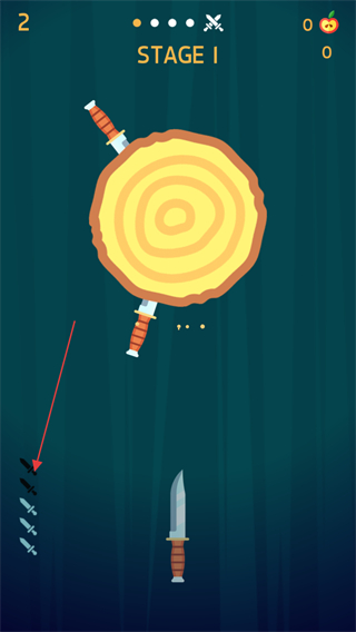 3、STAGE2木盘有飞刀,瞄准空隙发射,让飞刀成功插入。