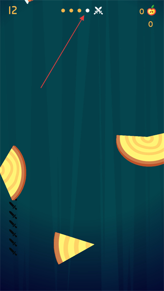 4、插满飞刀后木盘破碎,瞄准上方进度点,推进通关进程。