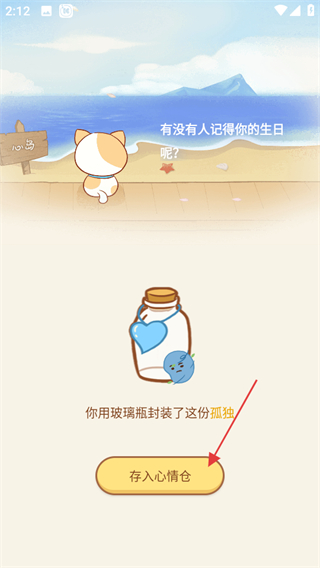 4、写完日记后在心情封装页面,点击存入心情仓可以把心情存入心情仓。