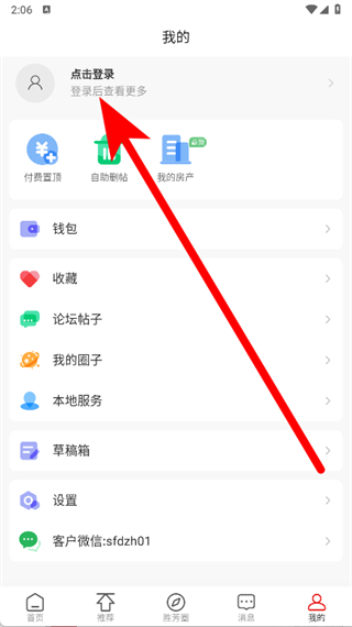1、打开胜芳大杂烩,点击首页右下角我的,进入个人页面。