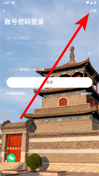 3、在登录界面右上角,点击注册,进入注册新账号页面。
