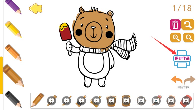 3、在左侧调色板选取合适颜色,使用手指在屏幕上直接进行填色与细节绘制。