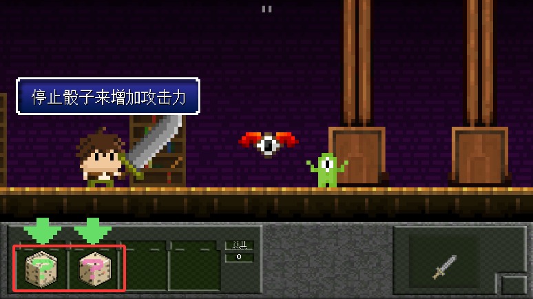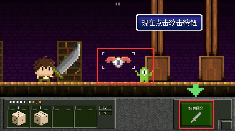 游戏的战斗相当具有戏剧性,通过左下角的骰子点数和来判定攻击力的多少,骰子可以无限丢,但是如果出现1点,就直接算miss,所以一定不要太贪心强大的攻击哦。