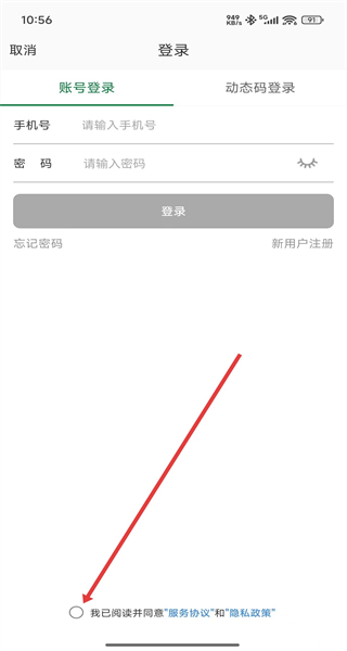 3、进入到登录页面中,在登录前需先点击勾选下方我已阅读并同意按钮后操作。