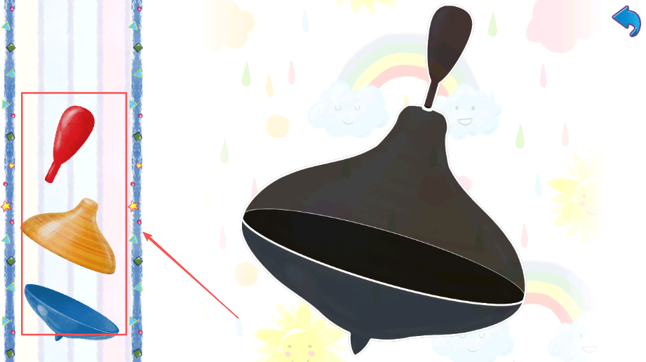 4、通过拖拽操作认识不同玩具的外观特征,同时配合语音提示学习颜色名称和物品用途。
