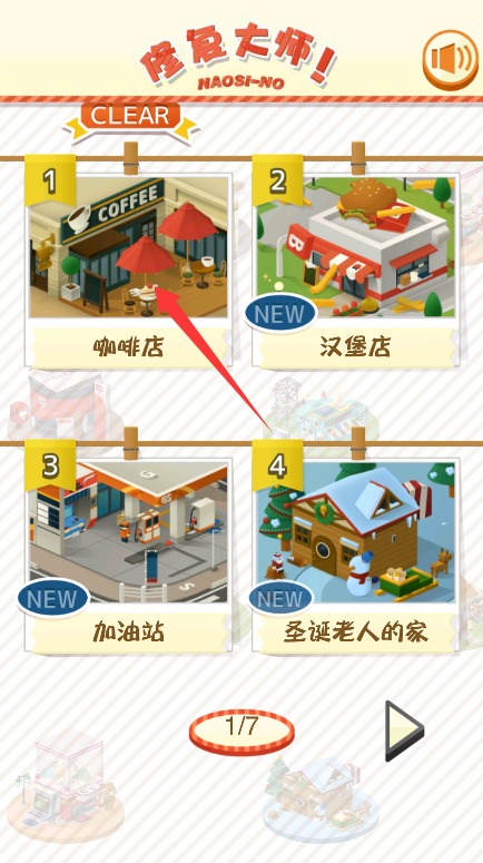 1、启动游戏后选择想要挑战的关卡,每个场景都有独特的破损物品等待修复。