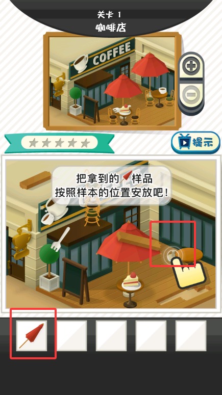 3、参照上方样本图示的正确的摆放位置,将放置工具栏的物品重新放到对应的位置。