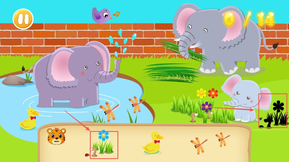 2、在每个生动有趣的互动场景中仔细观察各种动物形象,通过触摸屏幕与它们互动,聆听逼真的叫声并学习对应的名称和习性特点。