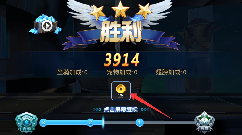 4、成功通关后获得金币与进阶材料等奖励,点击屏幕继续解锁新的关卡体验。
