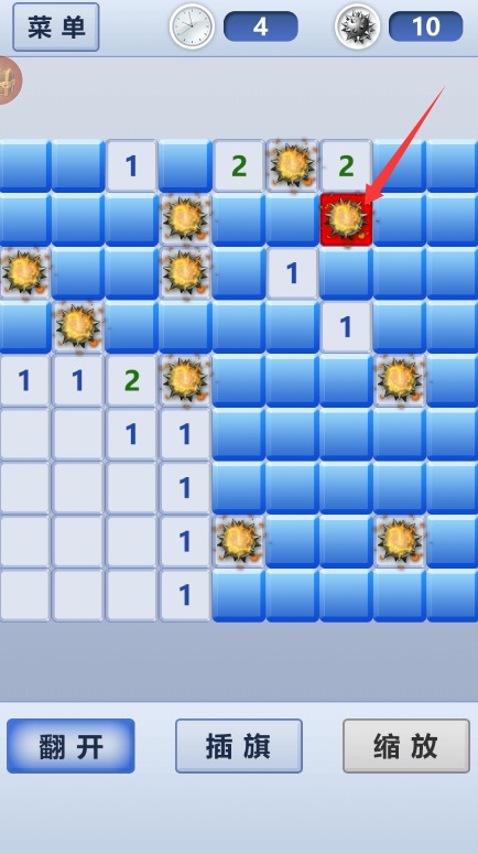 3、若不幸点中隐藏的地雷则立即失败,需要重新开始当前关卡的挑战过程。
