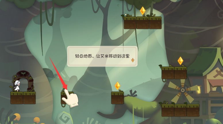 2、通过点击地面指引角色移动,利用场景中的方块搭建通往目标的道路。