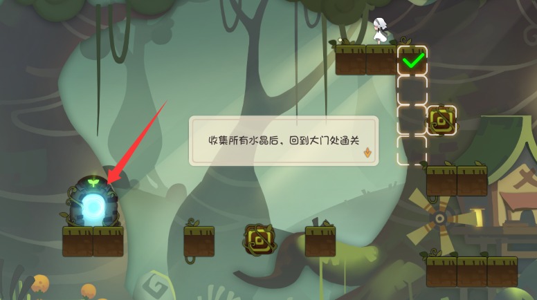 4、成功集齐全部水晶后前往终点大门,点击交互按钮即可完成关卡挑战。