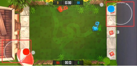2、采用同屏多控交互方案,单设备支持四组虚拟摇杆同步响应,通过色彩分区与震动反馈有效区分玩家操作指令。