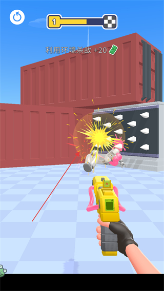 2、射击过程中,留意屏幕上方进度条,击中敌人会有得分提示,如利用环境杀敌+20。