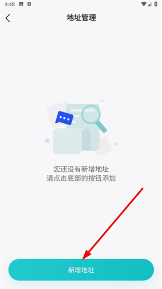4、在地址管理页面,点击新增地址按钮,按照提示填写地址信息即可。