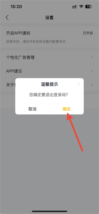 4、在弹出的温馨提示框中,点击确定按钮,完成退出登录操作。