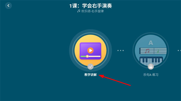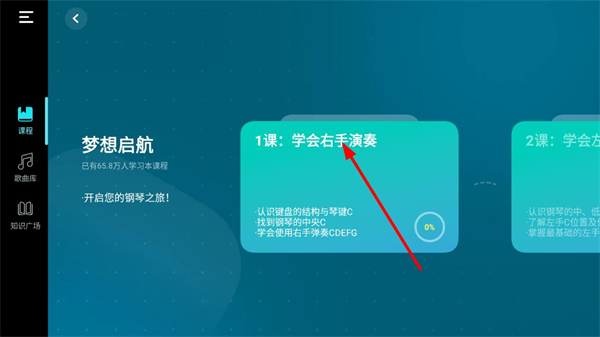2、在课程详情页面,点击1课学会右手演奏,进入该课学习页面。
