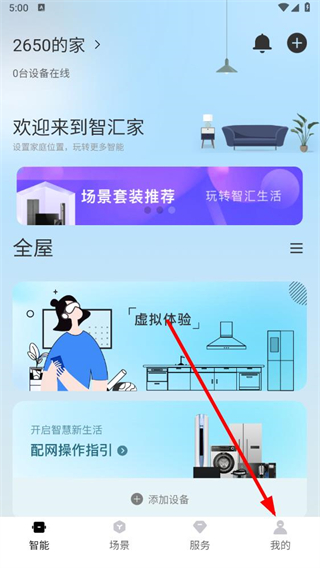3、在家庭页面,点击底部导航栏中的我的选项。