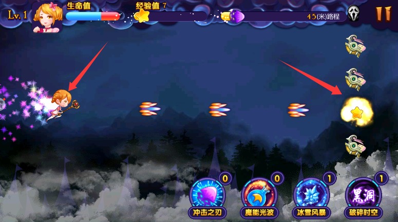 3、通过左右滑动屏幕控制移动方向,角色会自动对沿途敌人发动魔法攻击。