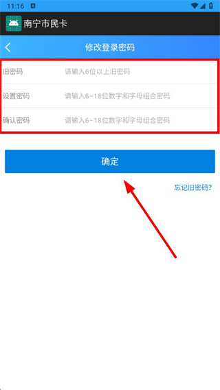 4、在修改登录密码页面,依次输入旧密码、设置密码、确认密码,然后点击确定按钮完成修改。