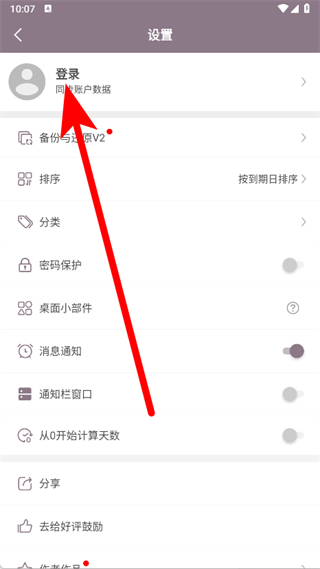 2、在设置页面里,点击登录选项,进入登录相关操作页面。