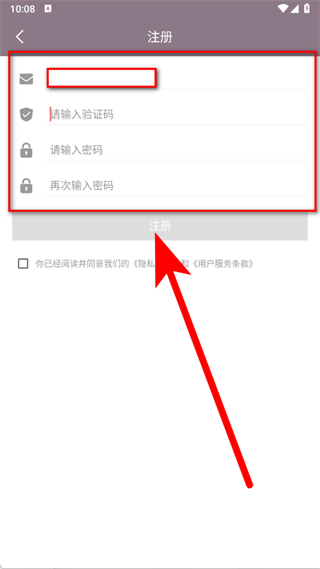 4、在注册页面的输入框中,输入自己的邮箱地址,点击获取验证码按钮。