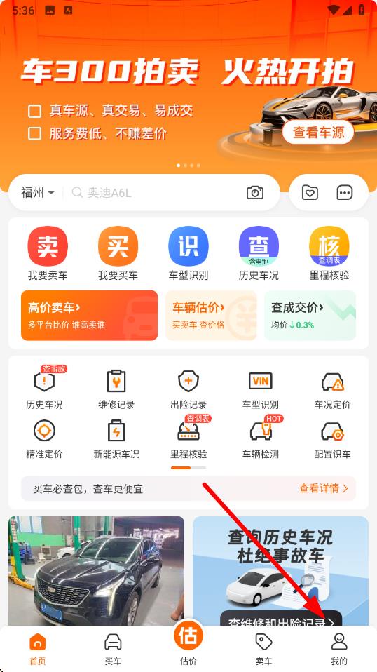 1、打开车300app,点击底部导航栏最右侧的我的选项,进入个人页面。