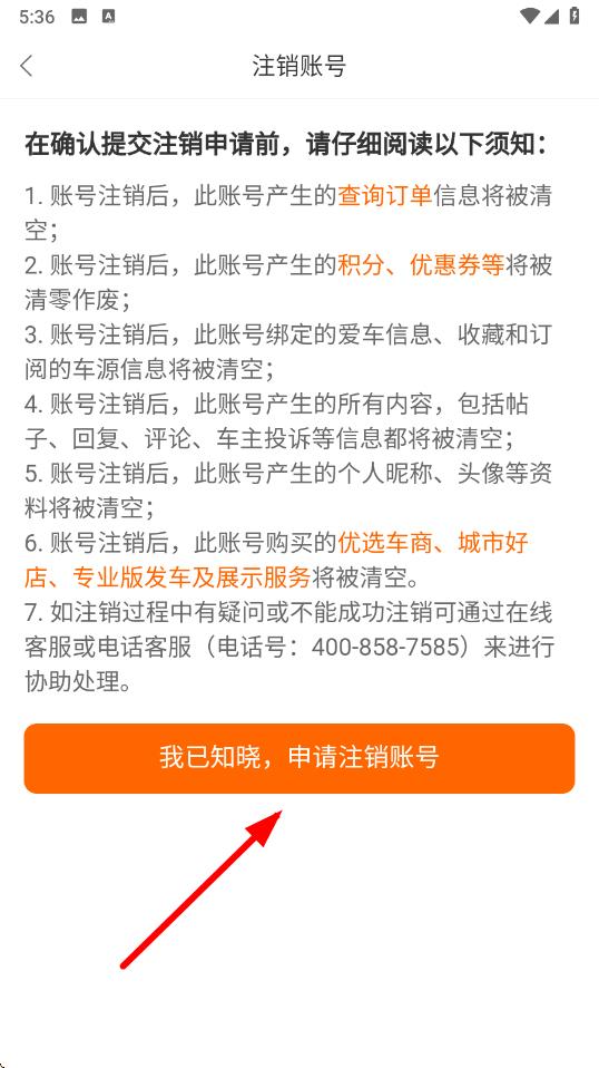 4、仔细阅读注销账号的相关须知,确认无异议后,点击我已知晓,申请注销账号按钮,按照后续提示完成账号注销操作。